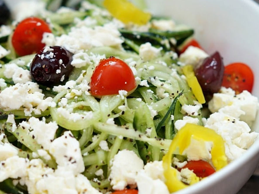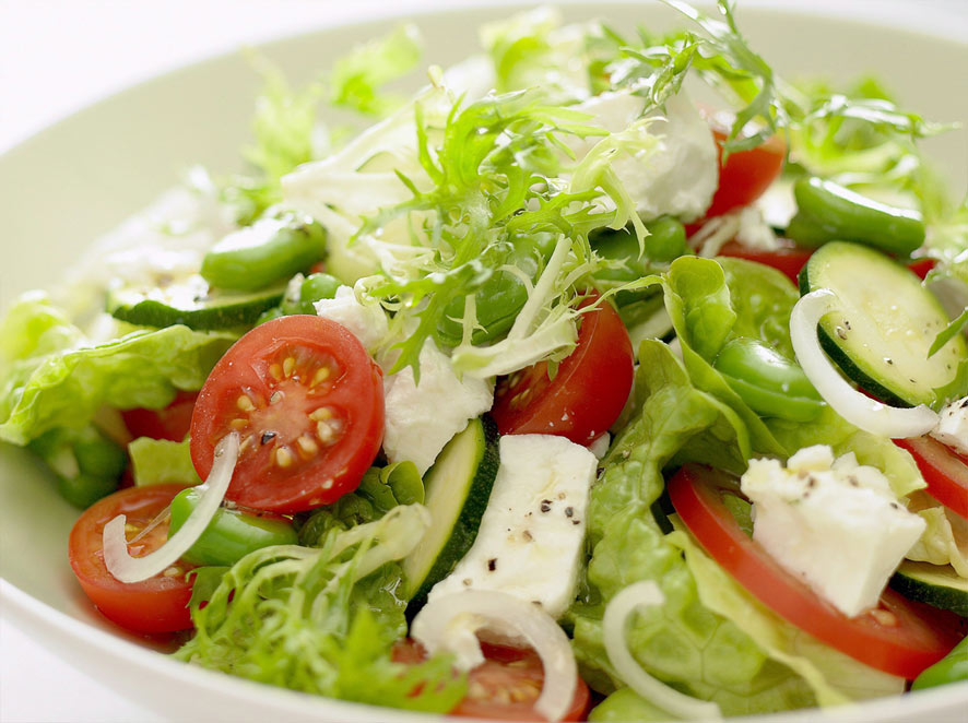 Tomato, Lettuce, Cucumber, Bell pepper, Carrot, Beans, Chicken, Shrimp, Feta Cheese, Olives